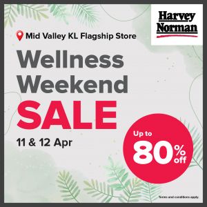 Discover the Harvey Norman Promotion at the Mid Valley KL Flagship Store! Enjoy up to 80% OFF during the Wellness Weekend Sale from 11-12 April 2026.