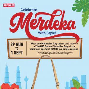Celebrate Merdeka at POP MART Malaysia! Redeem a FREE ZIMOMO Dupont Shoulder Bag with RM500 spend. 29 Aug – 1 Sep 2025.