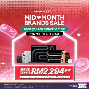 Shop the Switch Lazada Mid Month Sale from 14-15 April 2026! Save up to RM2,294 on your favorite Apple products exclusively on LazMall. Hurry, while stocks last!